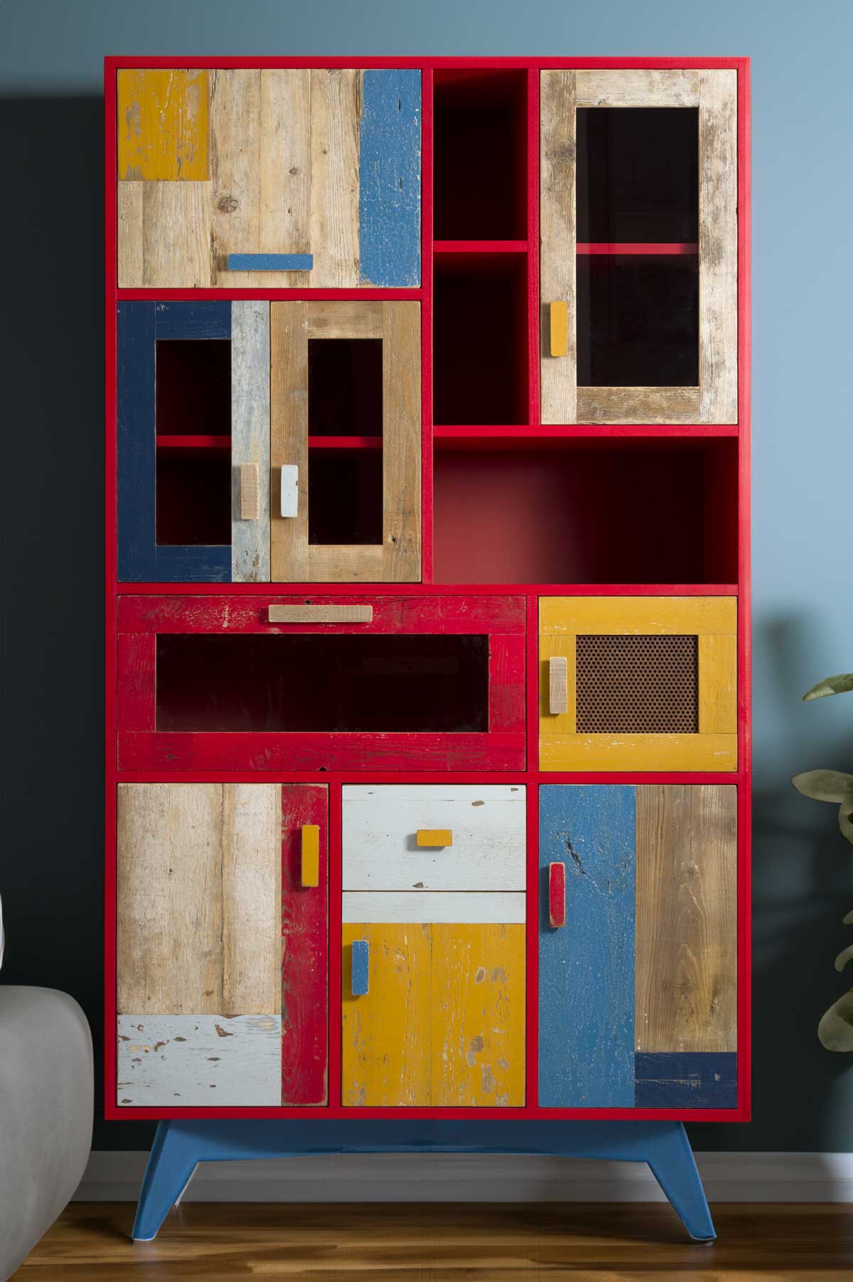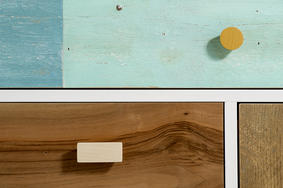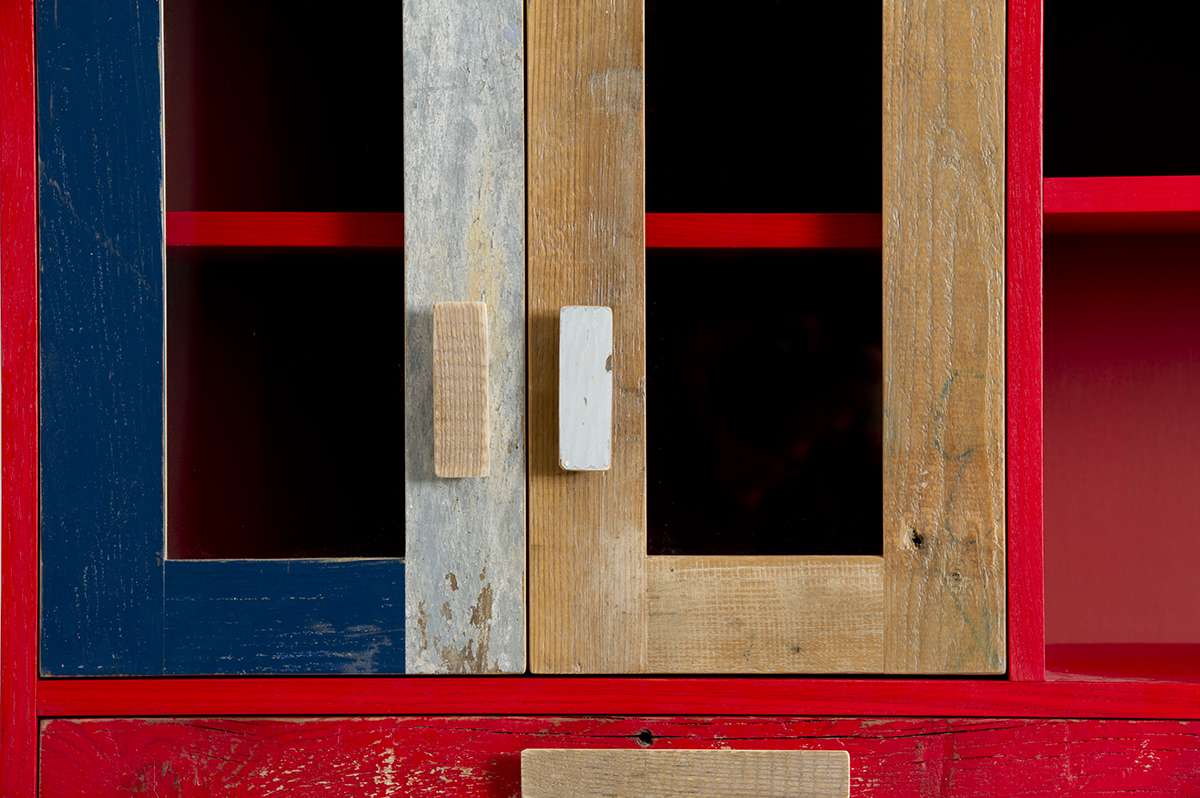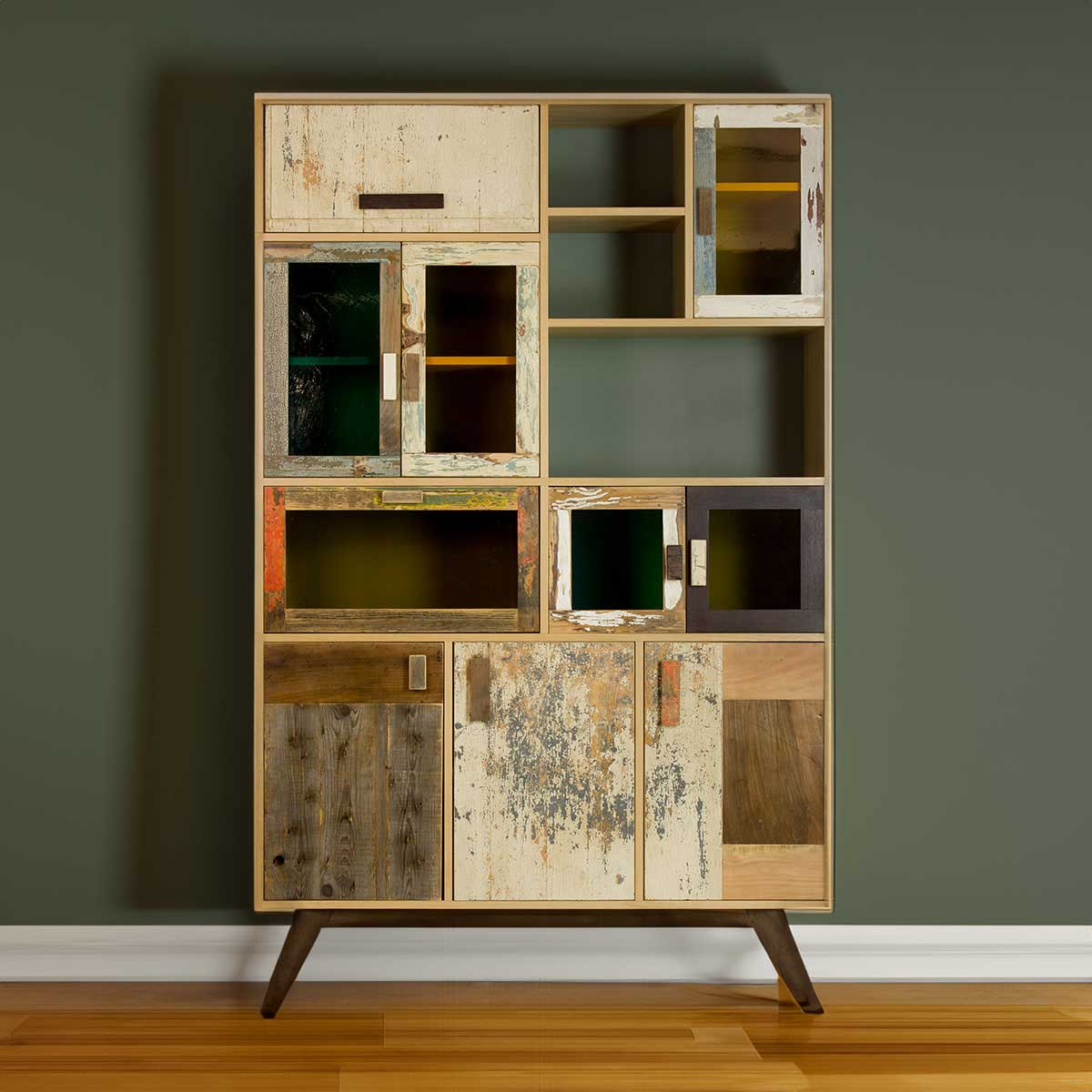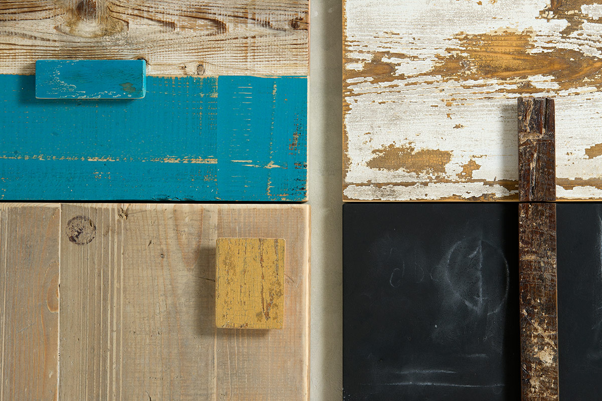Le nostre credenze in legno di recupero abbracciano tonalità che variano dal caldo dell’ambra al chiaro del rovere, arricchite da inserti di colore.