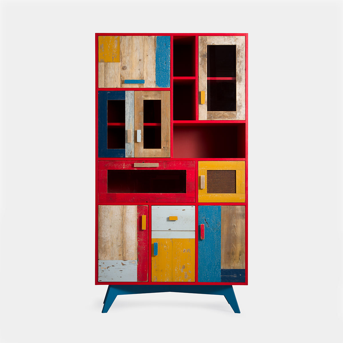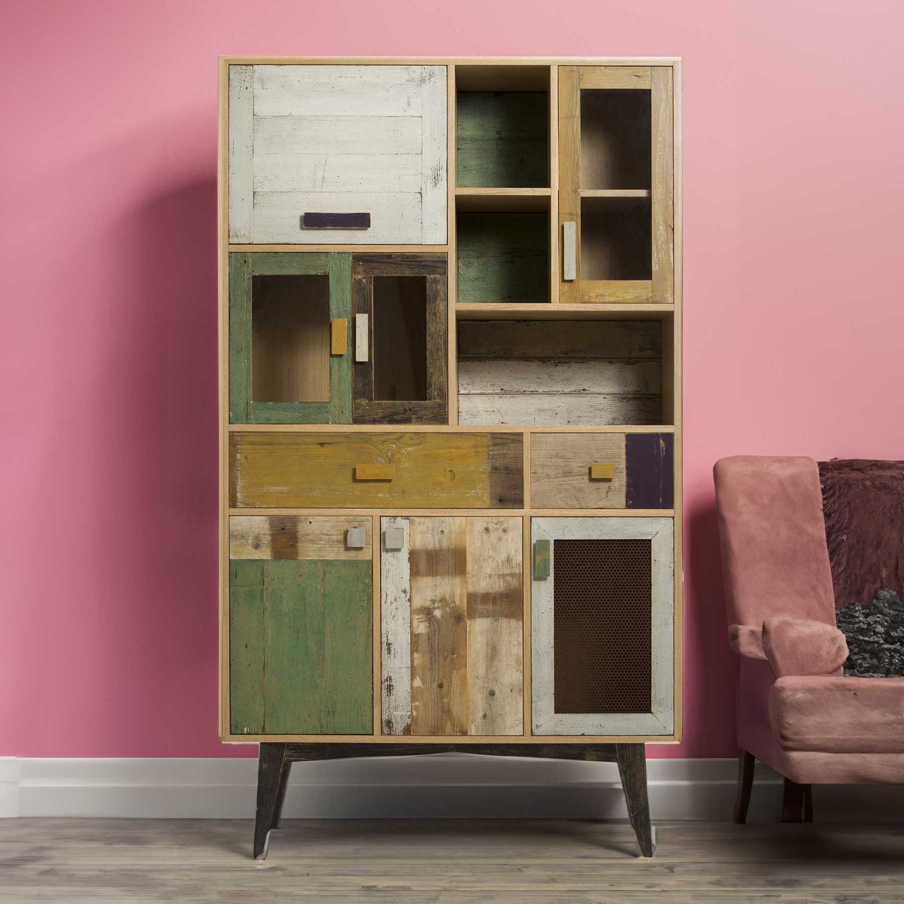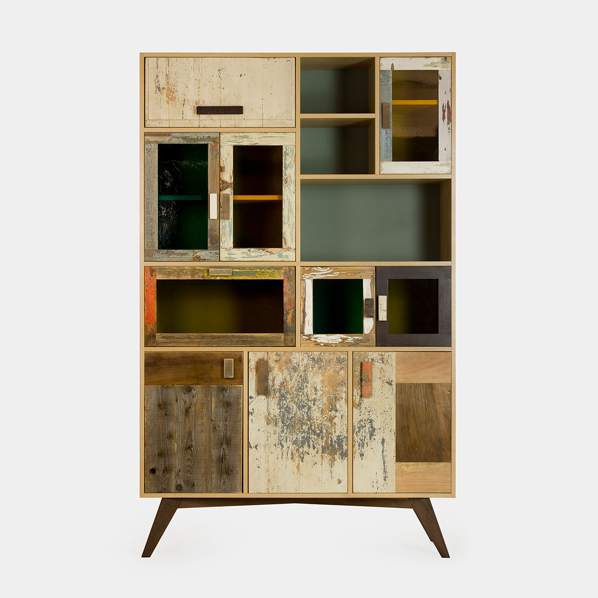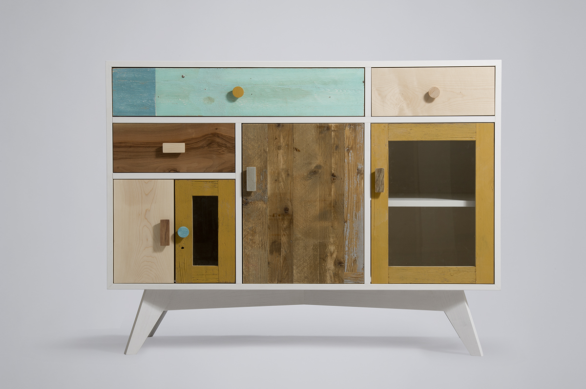 Le nostre credenze in legno di recupero abbracciano tonalità che variano dal caldo dell’ambra al chiaro del rovere, arricchite da inserti di colore.