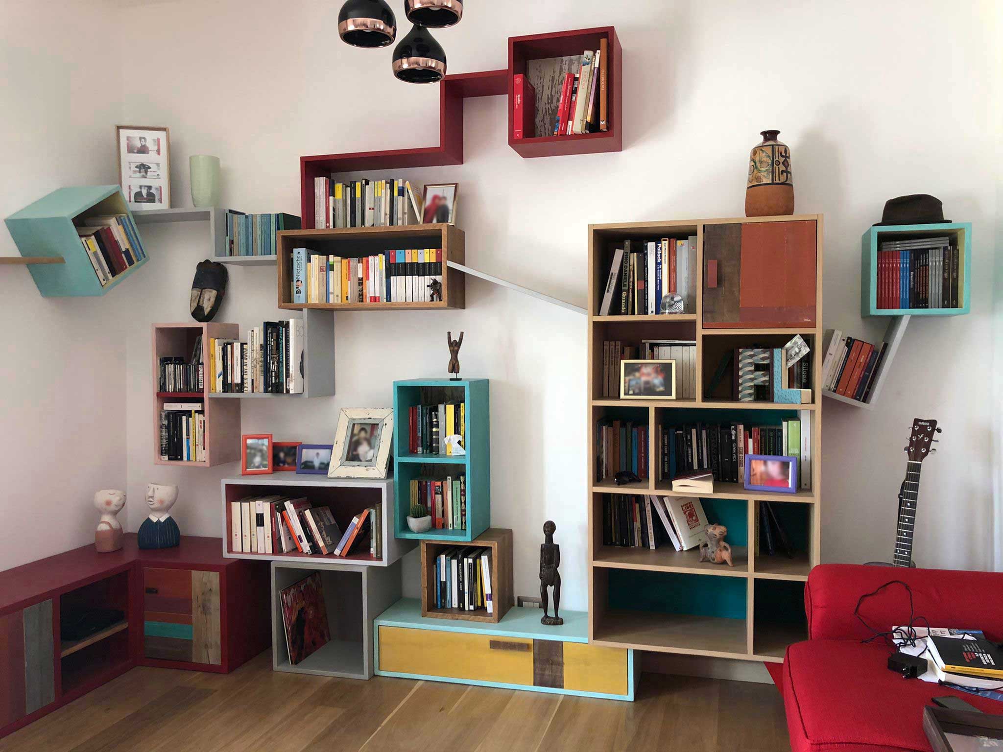 Le librerie moderne legno di Laquercia21 offrono poi ulteriori possibilità di personalizzazione: possiamo aggiungere scaffali a cubi colorati o configurare librerie modulari con vari colori e finiture, ideali per chi desidera un arredamento vivace e unico. Ogni libreria sospesa moderna è progettata su misura, in modo che i clienti possano scegliere materiali, configurazioni e dettagli, dando vita a soluzioni che vanno oltre i confini dell’arredo tradizionale, per riflettere appieno la loro visione e personalità.