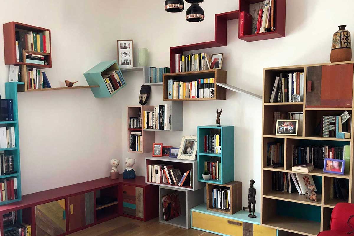 In Laquercia21, ogni libreria moderna sospesa è pensata per superare i limiti del design industriale, esprimendo l’unicità di chi la sceglie. Tra le nostre creazioni spiccano le librerie particolari a muro, come le librerie Retina, librerie agganciate a una lamiera forata e colorata. Questa struttura in metallo, sagomata in forme personalizzate, sorregge la libreria e permette di creare configurazioni originali, ideali per una libreria a muro sospesa design. La lamiera snodata in serpentine offre sostegno alle mensole, che fungono da scaffali per libri e oggetti decorativi, mantenendo un effetto di leggerezza e flessibilità.