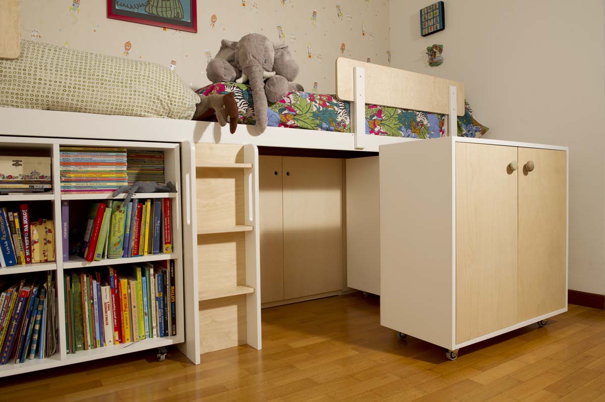 Le nostre composizioni sono perfette per arredare le camerette dei bambini come uno spazio polifunzionale, che può trasformarsi man mano che i suoi abitanti crescono, inglobando elementi nuovi o trasformando il preesistente.