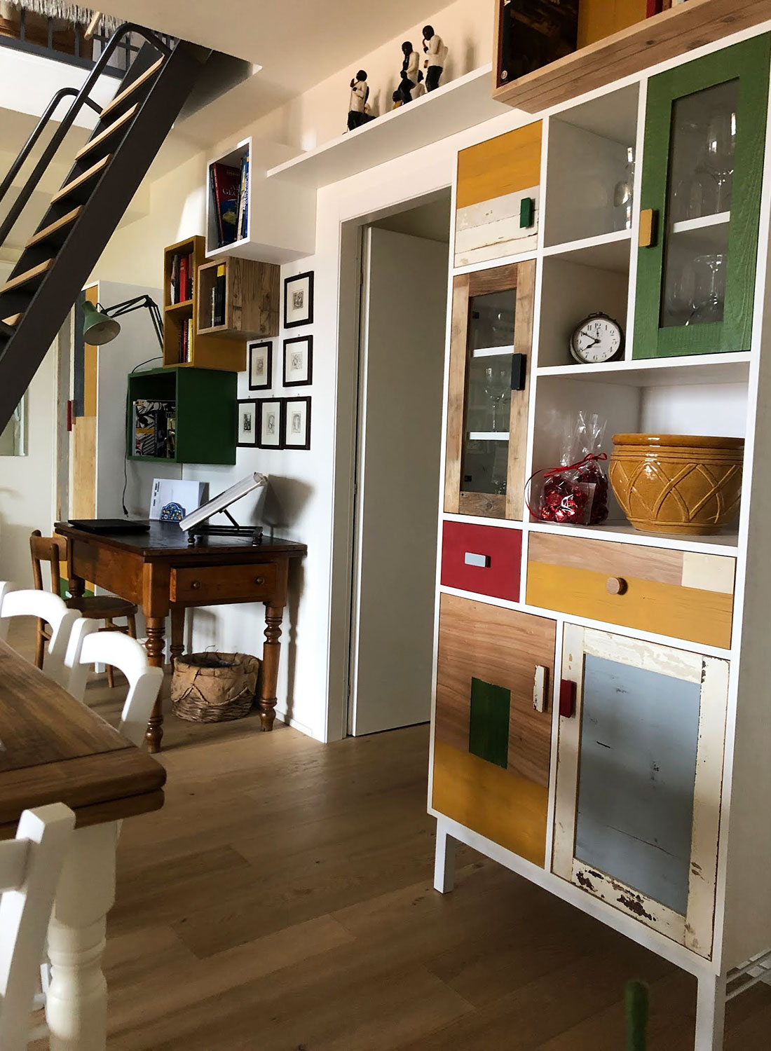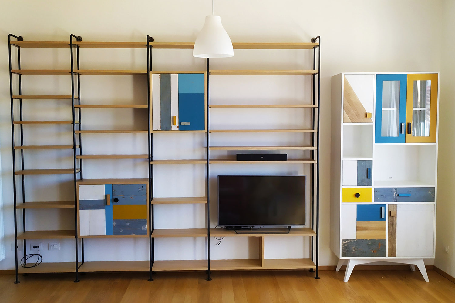 I materiali utilizzati, come legno massello e ferro, garantiscono una lunga durata e uno stile unico. Le nostre pareti attrezzate possono includere:
