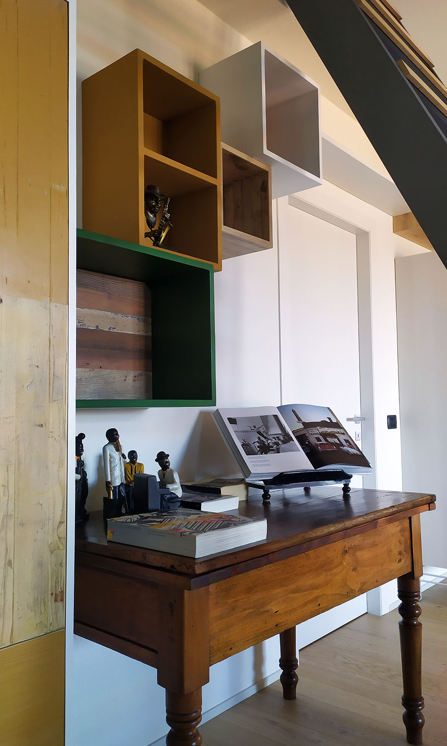 • Librerie vintage con elementi industriali, perfette per aggiungere un tocco retrò.