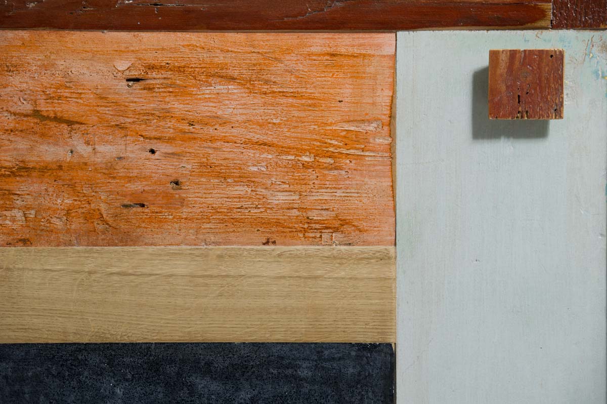 VETRO, LAMIERA FORATA E LEGNO DI RECUPERO