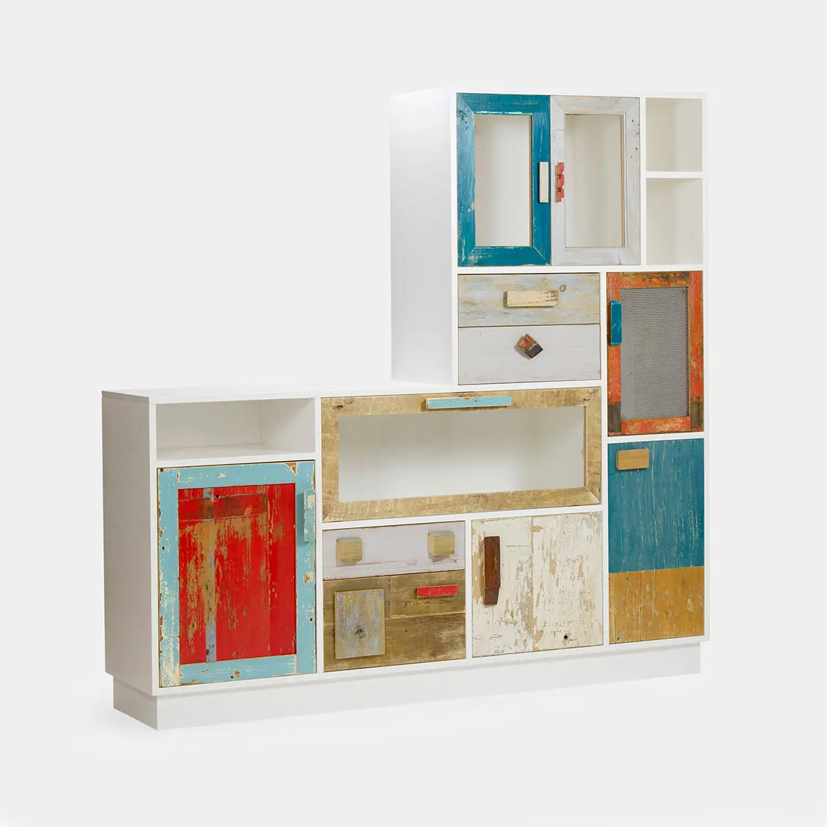 Queste madie moderne per cucine sono dotate di gambe dallo stile vintage, che richiamano il design del passato e aggiungono un tocco di eleganza senza tempo. La struttura delle credenze include vani a giorno, perfetti per esporre piatti o oggetti decorativi, e vani chiusi con sportelli, realizzati spesso in legno di recupero, disponibile sia al naturale sia colorato, per dare un carattere unico a ogni pezzo.