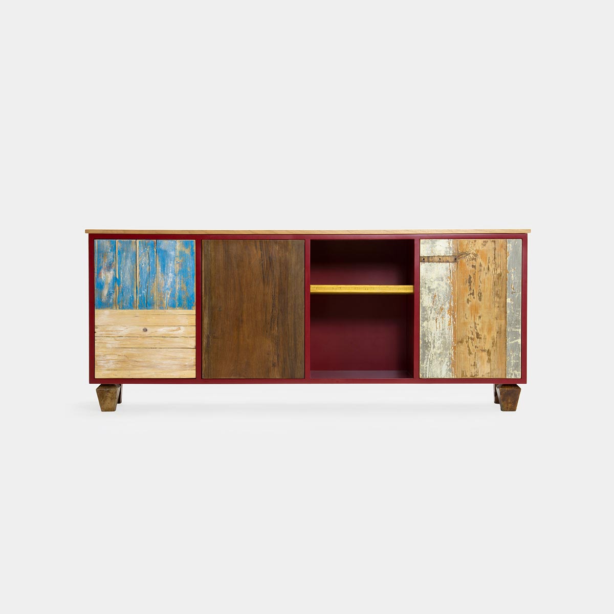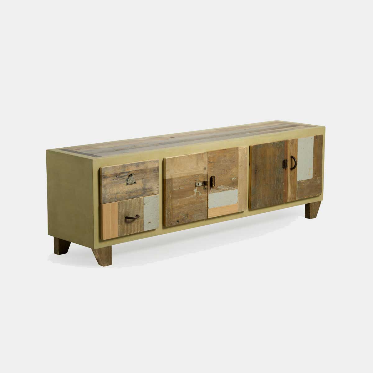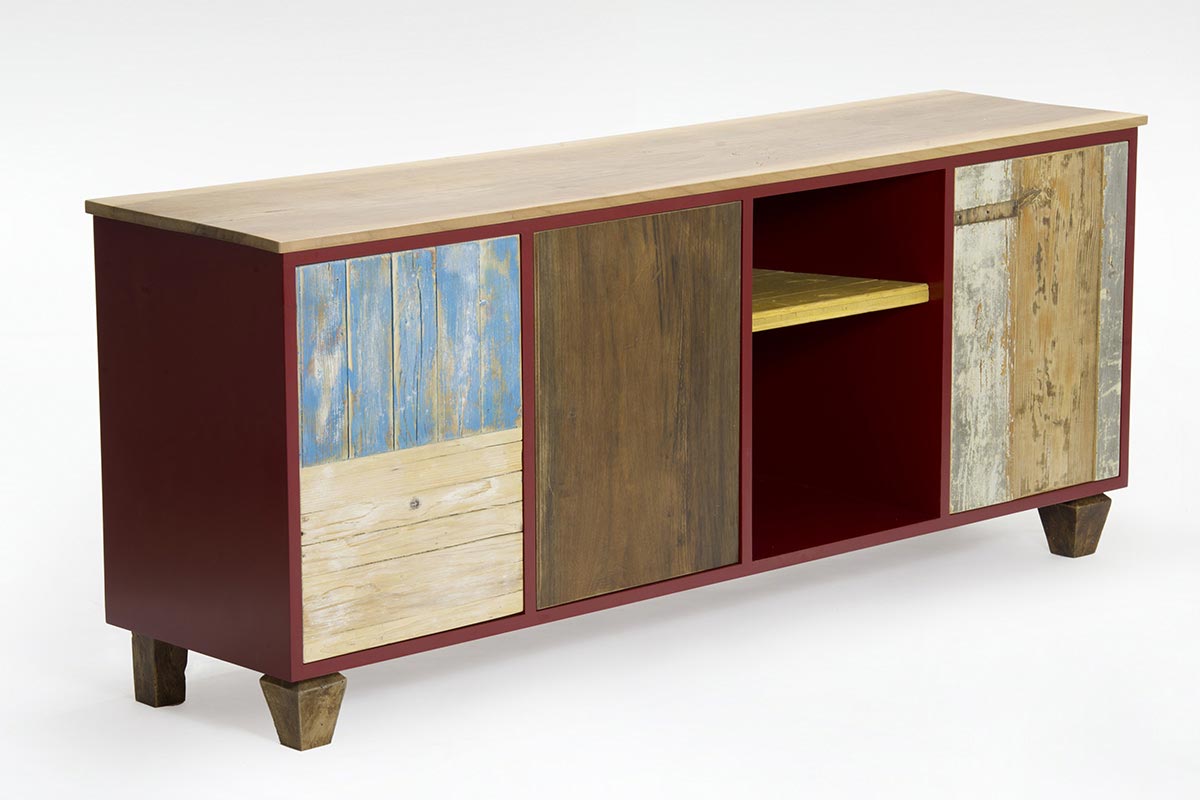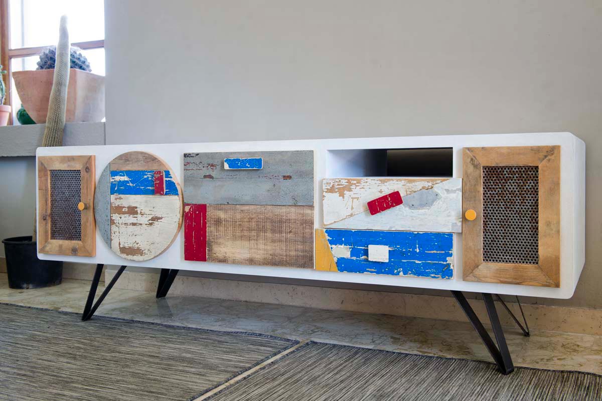 I frontali degli sportelli possono essere colorati o lasciati in legno massello al naturale, lavorato a mano e disponibile anche in legno di recupero, per chi ama uno stile più ecologico e sostenibile. Inoltre, i mobili per TV includono vani a giorno, spazi utili per collocare decoder e accessori, permettendo di avere tutto a portata di mano senza compromettere l’eleganza del design.