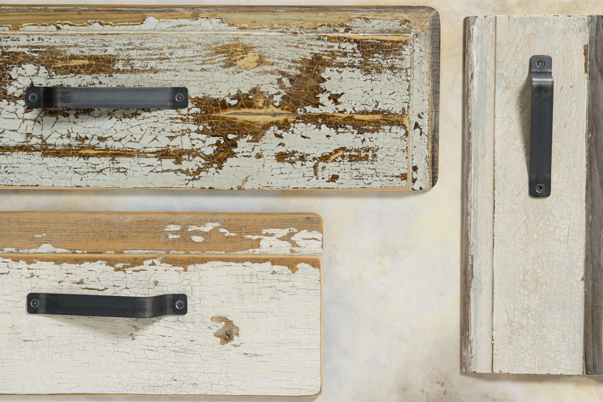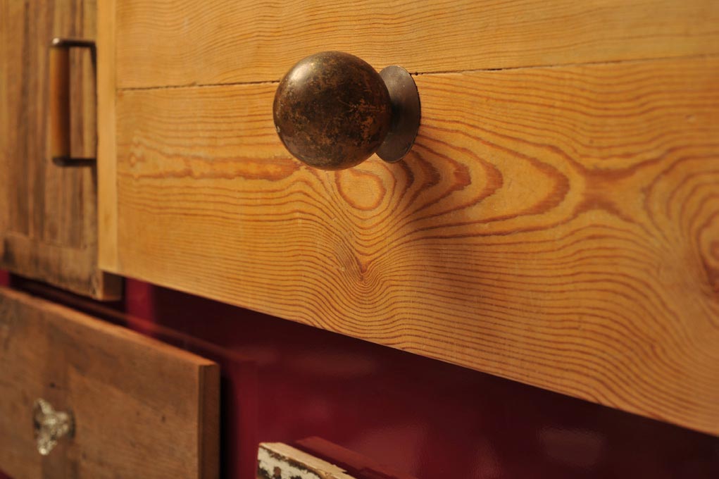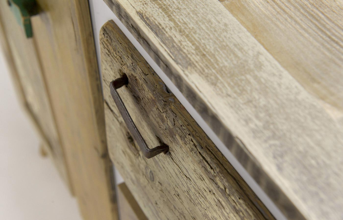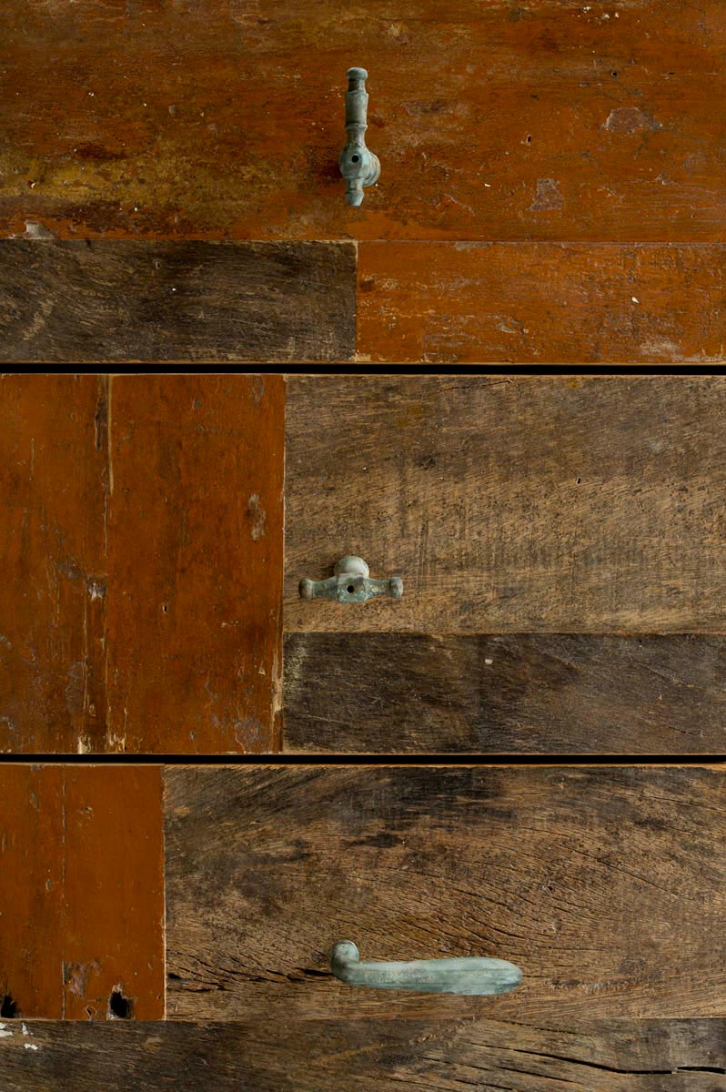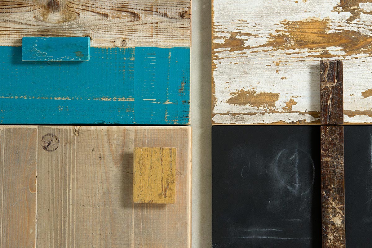 Ogni pezzo di legno che utilizziamo per i nostri mobili e per le madie colorate ha una sua storia: può provenire da vecchie porte, travi, recinzioni o persino solai di case abbandonate. Nonostante la sua età e storia, il legno riciclato, colorato o al naturale, è sorprendentemente resistente e durevole. Una volta consolidate, stuccate e poi trattate con finitura all’acqua o resina trasparente per garantirne la protezione e stabilità nel tempo, queste tavole diventano un materiale affascinante proprio per le loro patine antiche che testimoniano le stratificazioni del tempo.
