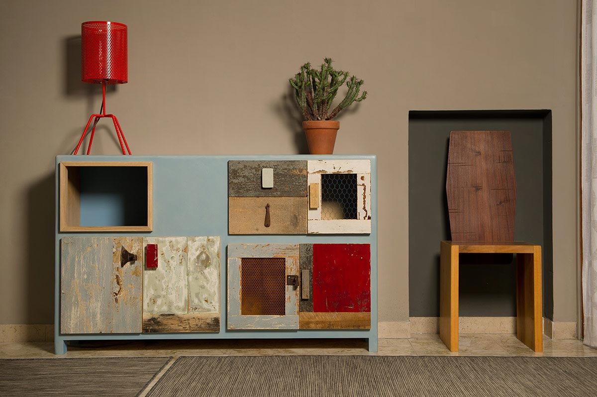 Mobili colorati in legno riciclato