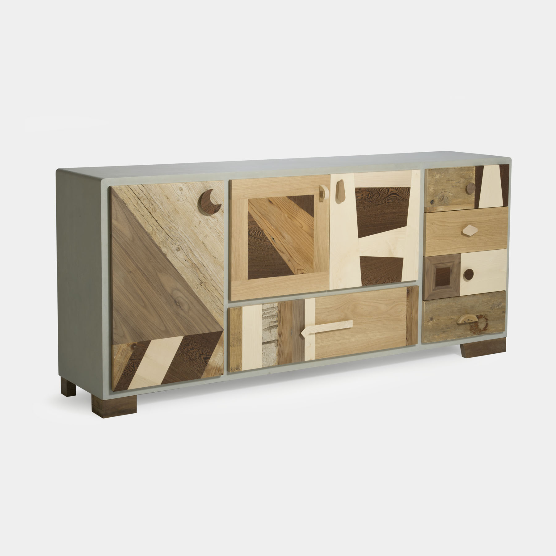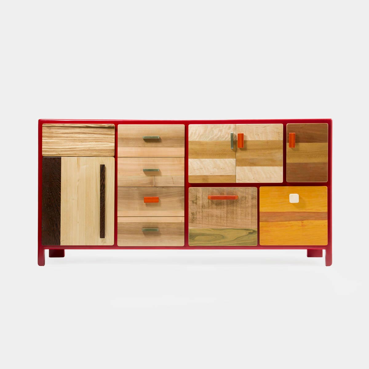 Tra le nostre linee, spicca la collezione “Patchwork,” dedicata a chi cerca una credenza anni Cinquanta colorata con un twist moderno. Questi mobili combinano una struttura laccata e sportelli in legno massello, arricchiti da essenze diverse come acero, noce, wengé e rovere. Il risultato è un frontale ricco di movimento, che unisce colori e texture per un effetto unico e dinamico.