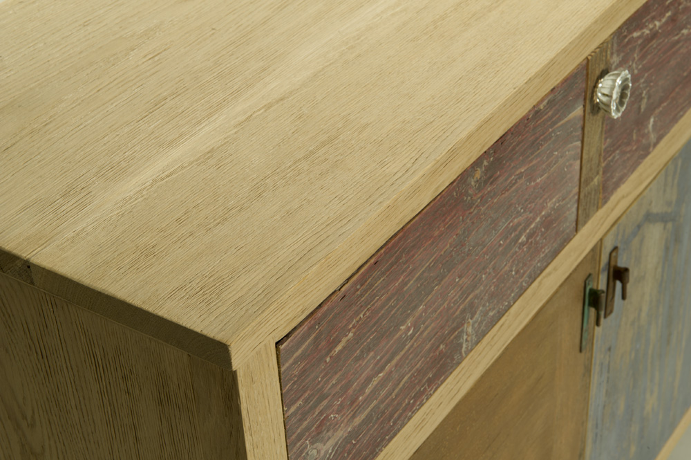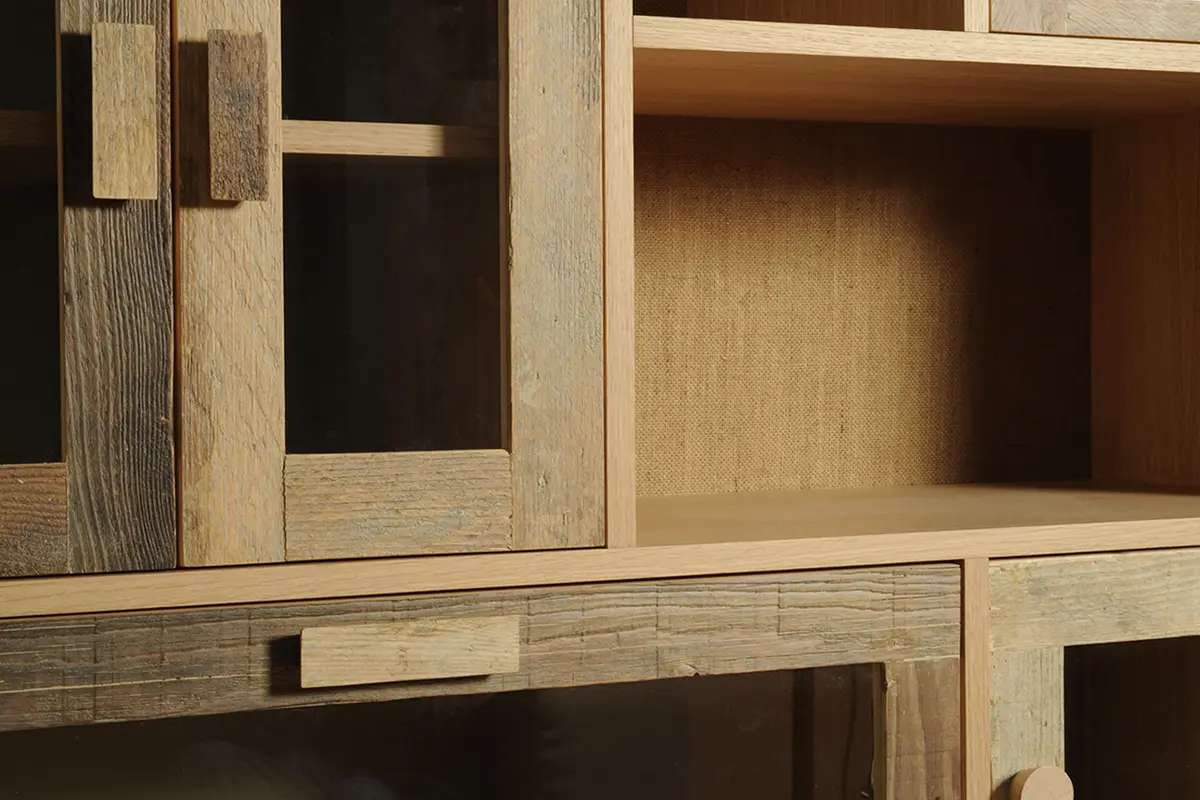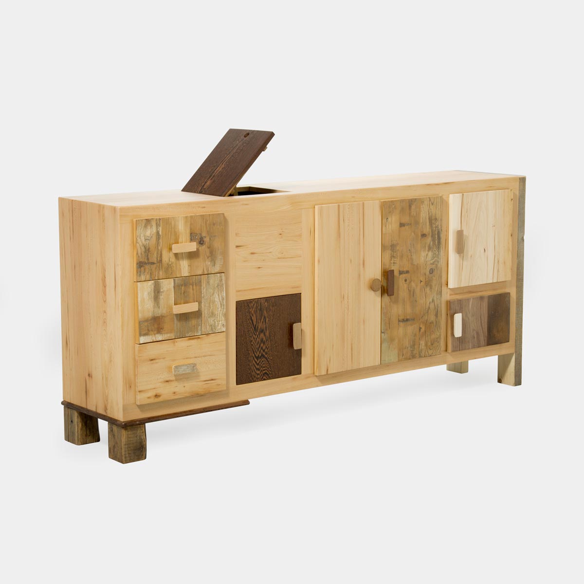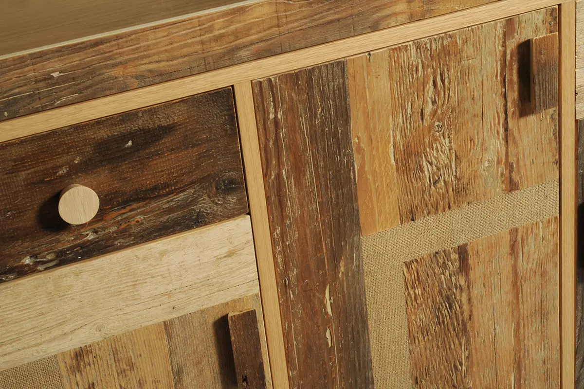 Le madie e le credenze Nature sono realizzate a mano utilizzando esclusivamente legno massello nuovo di origine certificata e di alta qualità, insieme al legno di recupero con le sue patine vecchie e antiche. Diventa così uno spazio su cui combinare toni, nuances, texture e matericità.