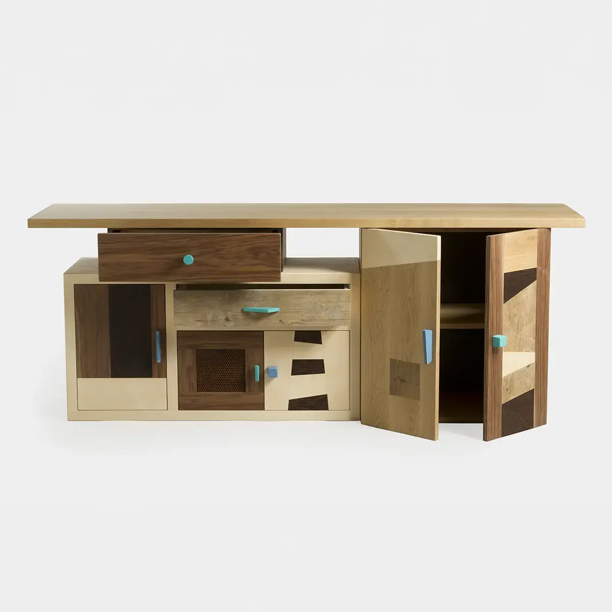 Una sapienza artigianale combinata con una ricerca estetica particolare sulla forma credenza, che viene di volta in volta trasformata, composta e ricomposta secondo i capricci della matita, crea sempre nuovi mobili, madie e credenze dal gusto moderno.