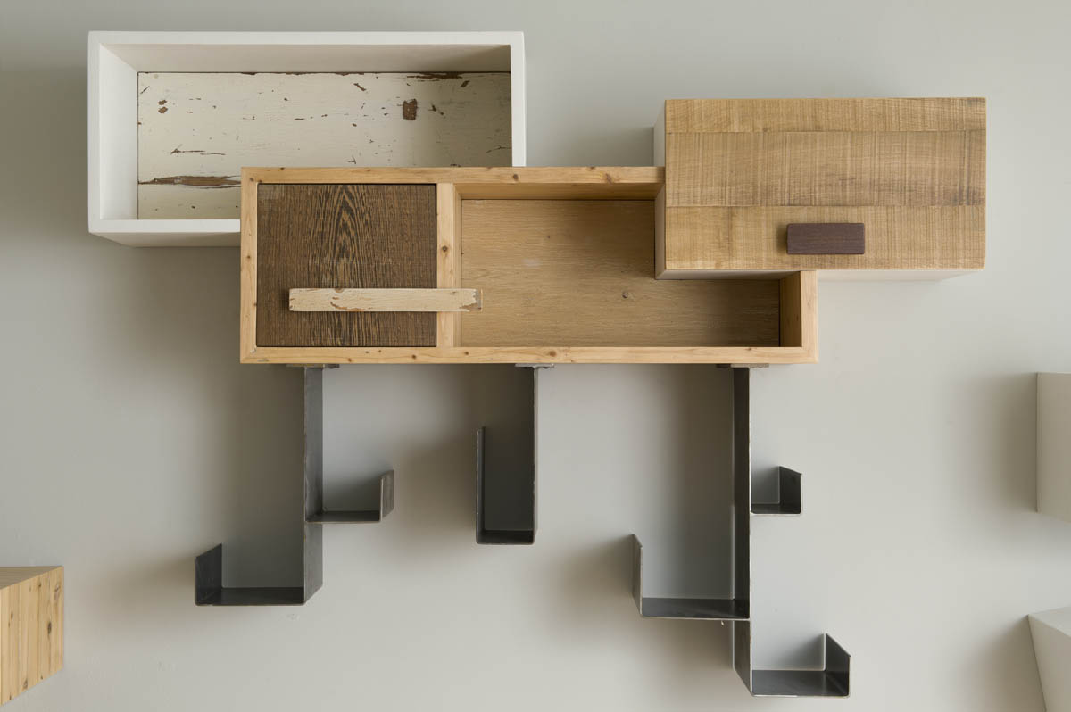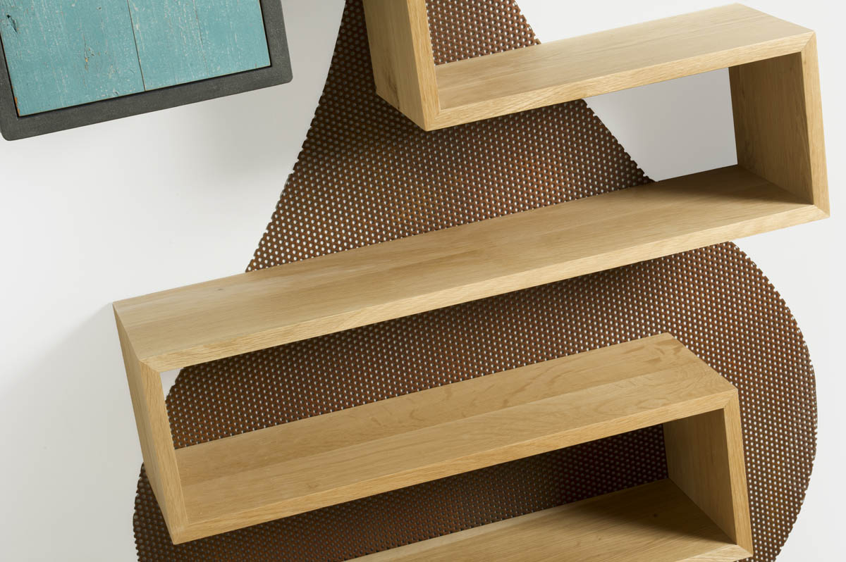 Ogni parete attrezzata angolare nasce da un’attenta progettazione su misura, studiando le esigenze del cliente e le caratteristiche della stanza. Il supporto in ferro, semplice da fissare e versatile nelle forme, ci permette di creare un design unico, dove le mensole e i moduli si alternano in un gioco di volumi che dà vita a una composizione vivace e armoniosa.