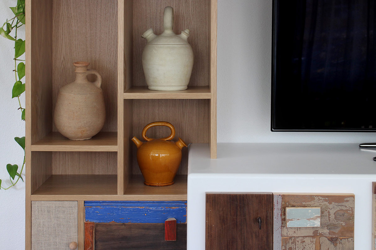 La nostra idea di parete attrezzata contemporanea si basa sulla combinazione di materiali autentici e forme libere. Il legno grezzo, con le sue venature e imperfezioni, si unisce alle lamiere di ferro colorate, offrendo un contrasto che rende ogni parete unica. Le superfici materiche del legno incontrano la lucentezza del ferro verniciato, creando un arredo che è al tempo stesso solido e leggero.