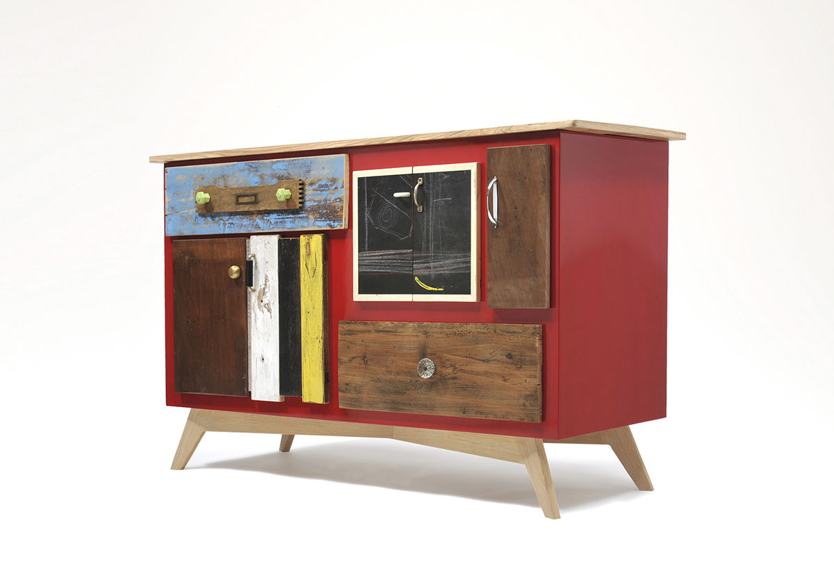 Questa credenza è pensata per chi ama lo stile contemporaneo ma non vuole rinunciare al fascino del passato. Infatti, la credenza rossa vintage si ispira alle linee classiche, ma è rivisitata in chiave moderna con dettagli innovativi e materiali di recupero. Le gambe rastremate in legno massello di frassino conferiscono un tocco di eleganza, mentre i cassetti e gli sportelli realizzati con materiali eterogenei, come il vetro e l’ottone, ricordano le lavorazioni tradizionali.