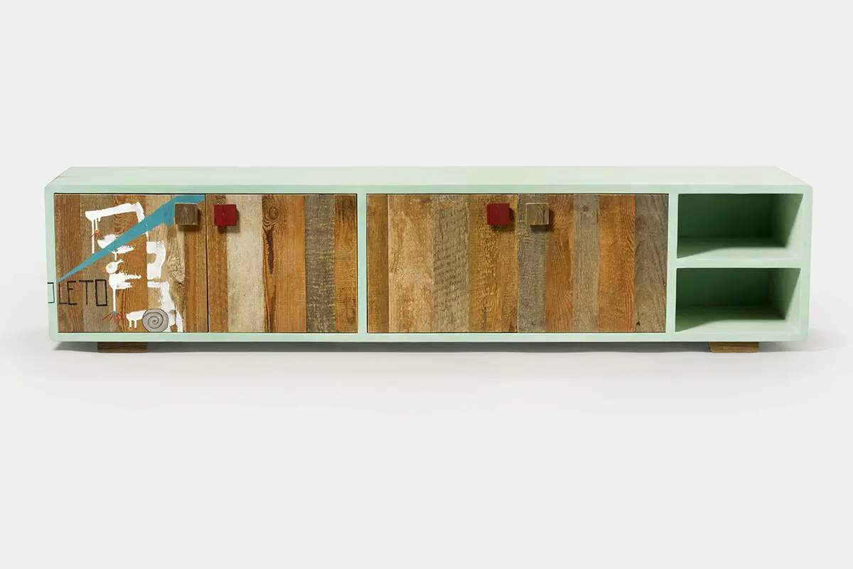 L’utilizzo di materiali di recupero non solo riduce l’impatto ambientale, ma contribuisce anche a dare carattere e unicità al mobile. Ogni pezzo presenta imperfezioni naturali del legno, che diventano parte integrante del suo fascino.