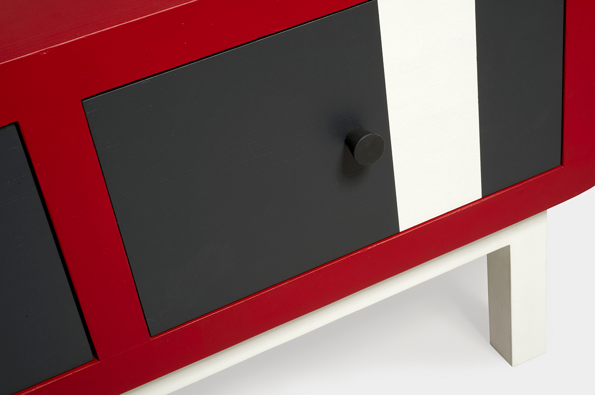 Il mobiletto basso rappresenta un elemento essenziale nell’arredamento di ogni soggiorno moderno. Non solo offre un supporto funzionale per la TV, ma aggiunge anche un tocco di stile e carattere all’ambiente. In particolare, il nostro mobiletto basso, caratterizzato da fianchi laterali stondati e una vivace finitura in rosso acceso, si distingue per il suo design unico e artigianale.