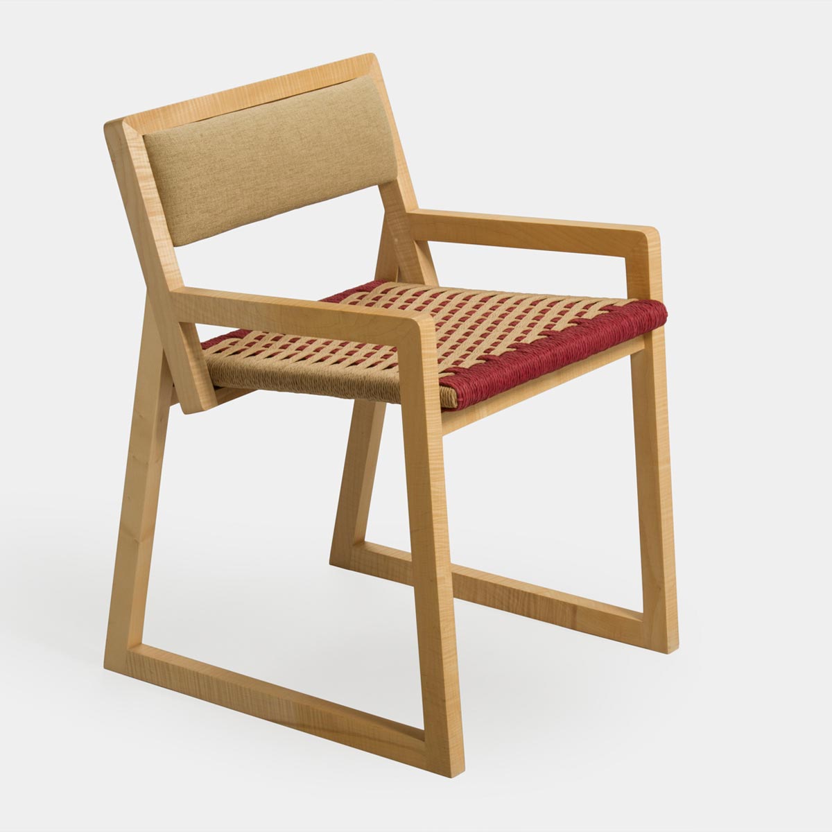 Sedia con struttura in legno di acero al naturale e seduta impagliata a mano in danish cord.