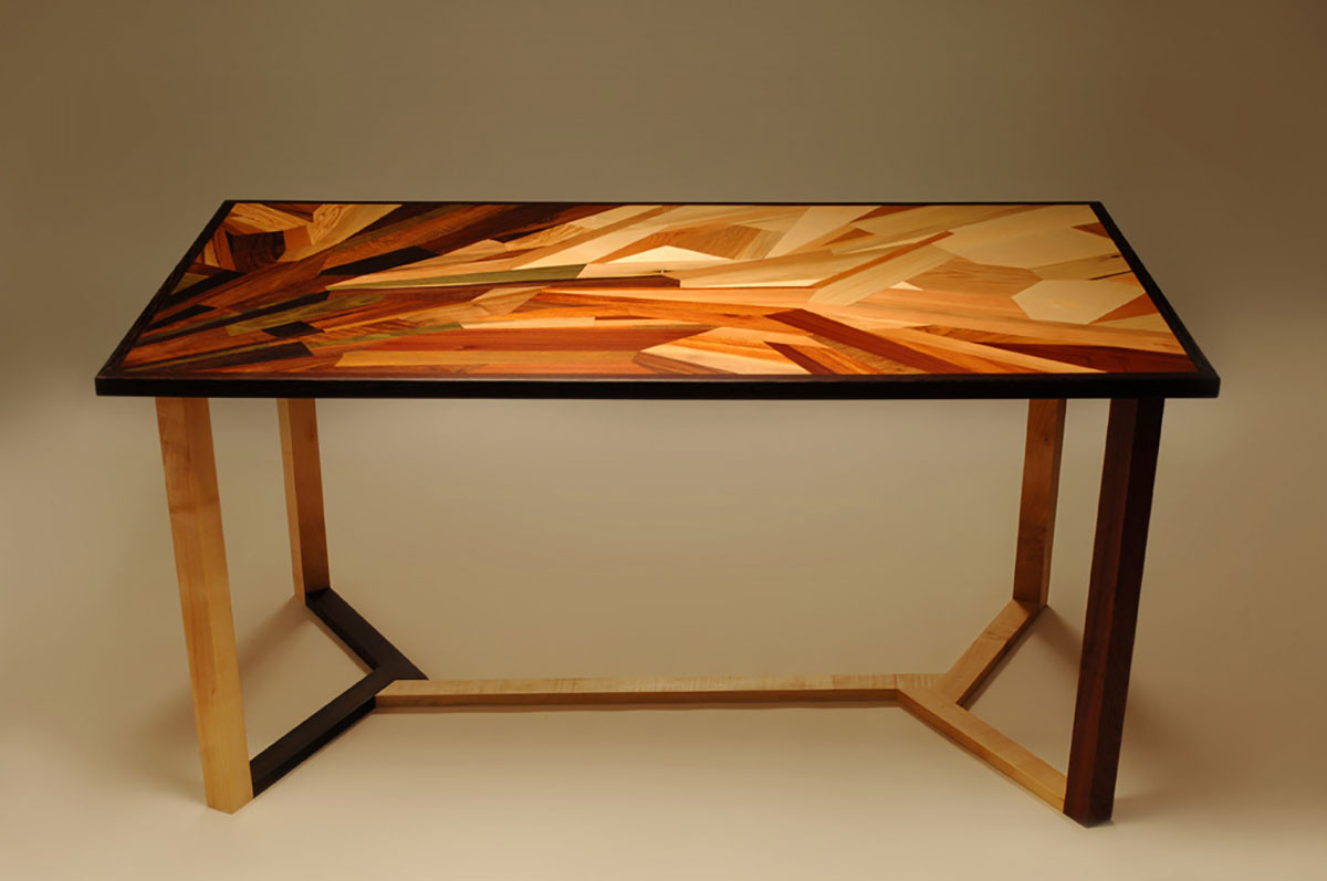 Un mosaico di essenze: il piano del tavolo LuceOmbra