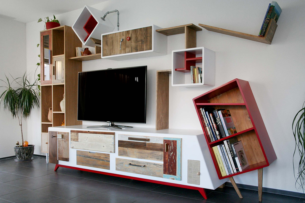 Una parete angolare, vista come un foglio bianco, si presta ad una pressoché infinita possibilità di creare forme libere ma nel contempo capaci di funzionalità e contenimento. Quando il gioco del disegno è libero dagli schemi canonici della parete attrezzata moderna nasce “Stort-up”, la nostra linea di composizioni a parete più artistica e sperimentale. Guarda tutte le pareti attrezzate Stort-up!