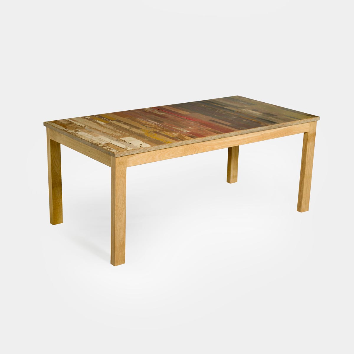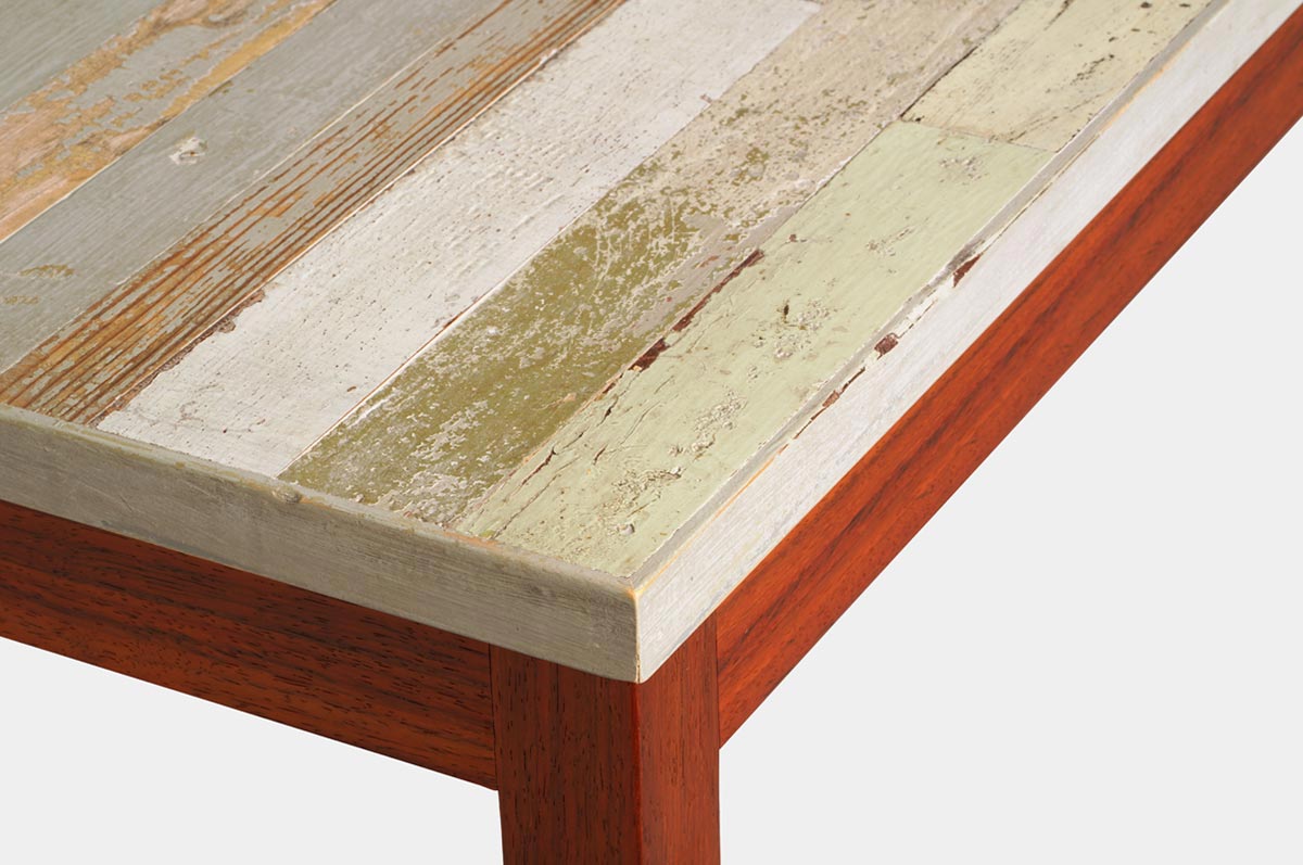 Costruire piani di tavoli in legno di recupero, o riciclato, significa scegliere un materiale unico e non convenzionale, ma anche robusto, sostenibile e di alta qualità. Progettiamo e realizziamo a mano e su misura nel nostro laboratorio tavoli in legno riciclato, colorato o al naturale, con piano fisso o allungabile, di dimensioni e formati personalizzabili.