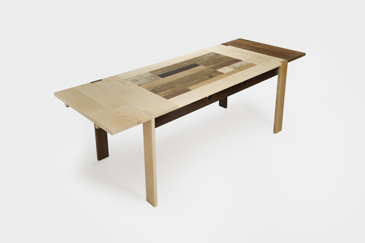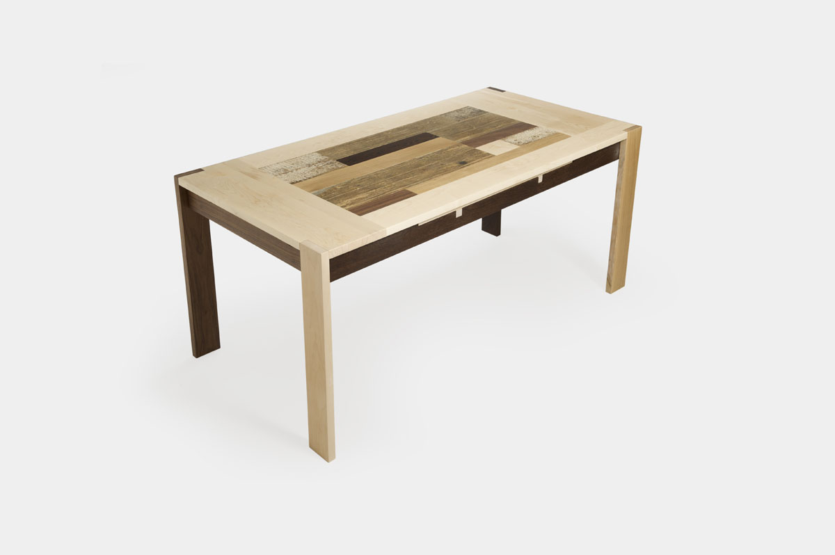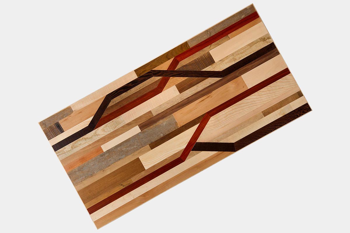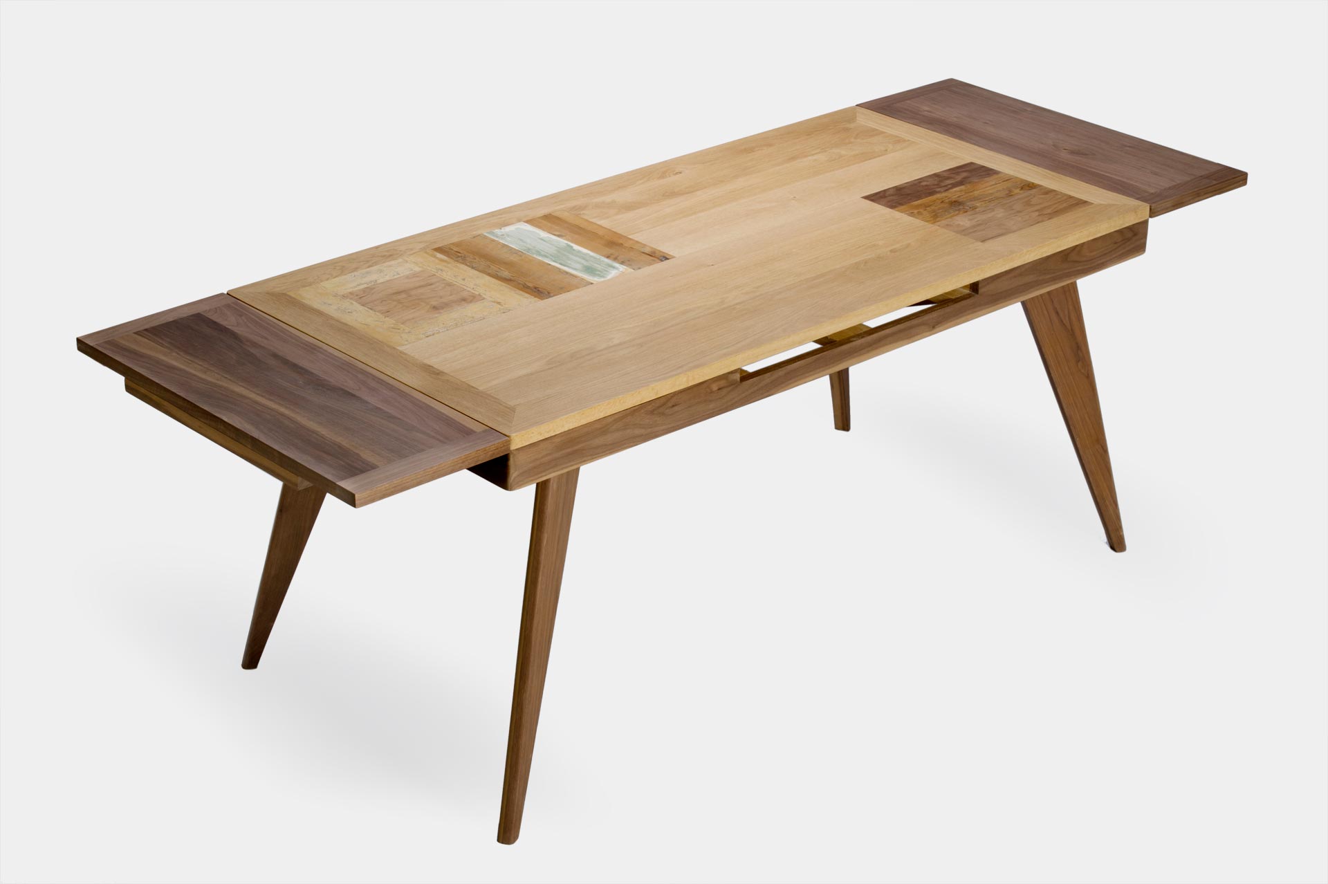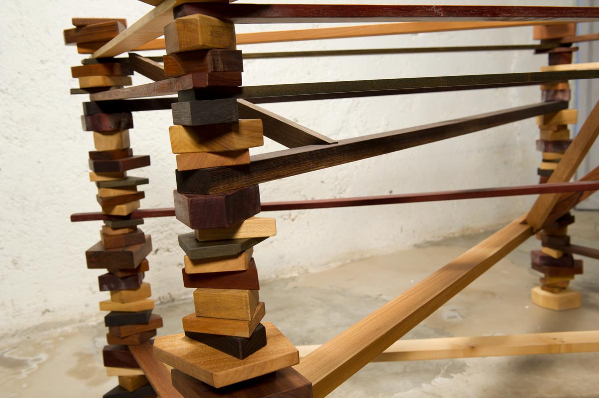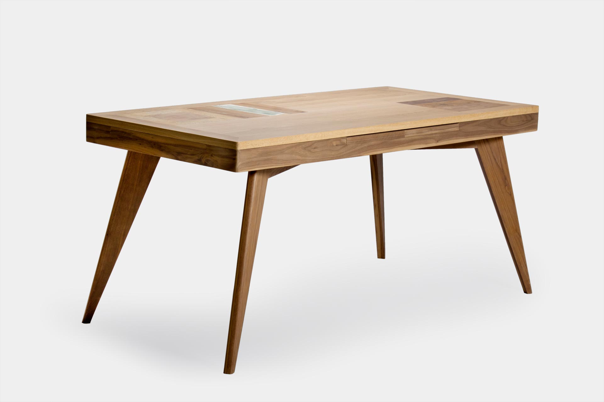 Tecniche e materiali del passato, trovano nuove applicazioni creano textures lignee e geometrie non convenzionali. È nata cosi una serie di tavoli con i piani composti da schegge e frammenti di legno massello nuovo nel suo tono naturale: con tasselli da combinare con infinite possibilità per creare opere uniche e irripetibili.